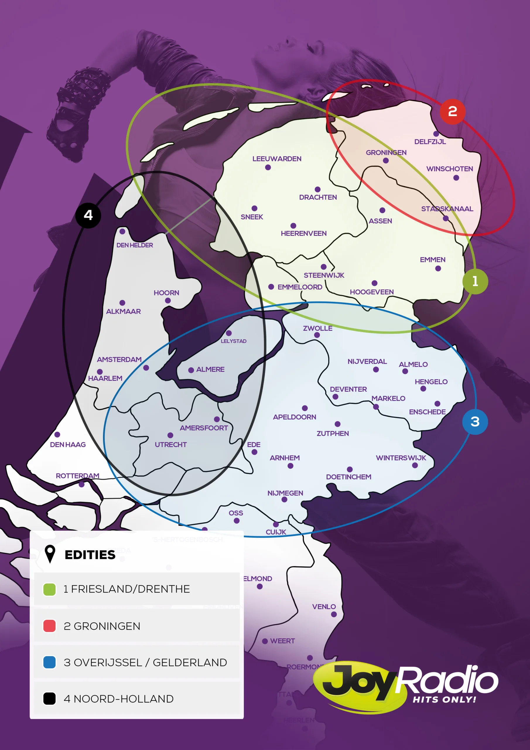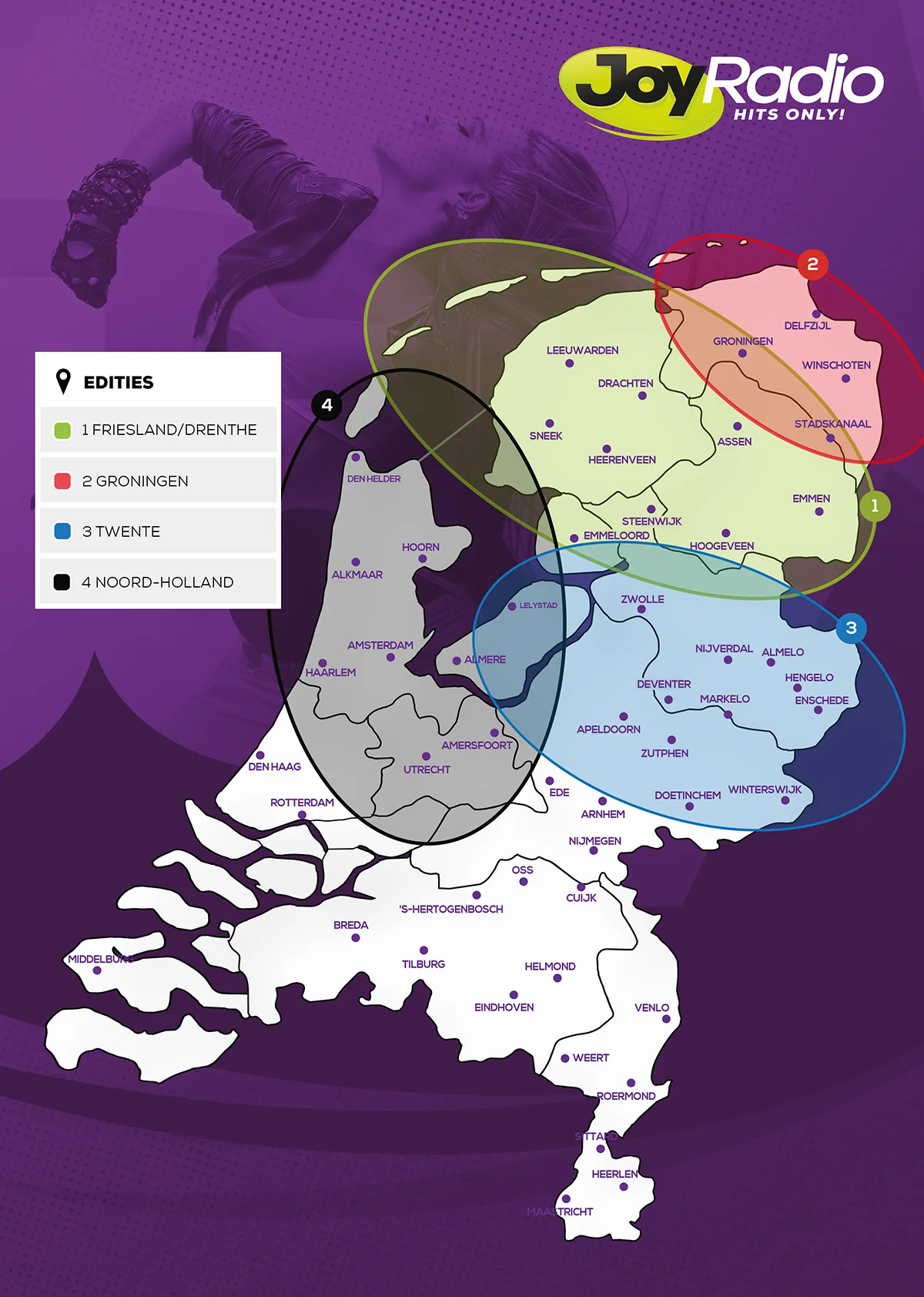 Joy Radio is een commerciële regionale radiozender voor Noord- en Midden- Nederland. Het station staat voor plezier, wat je terug kunt horen in de frisse en herkenbare muziekkeuze, namelijk de dancehits van nu! Joy Radio is te ontvangen in Friesland, Groningen, Drenthe, Overijssel, Gelderland, Noord-Holland, Utrecht en de Noordoostpolder.